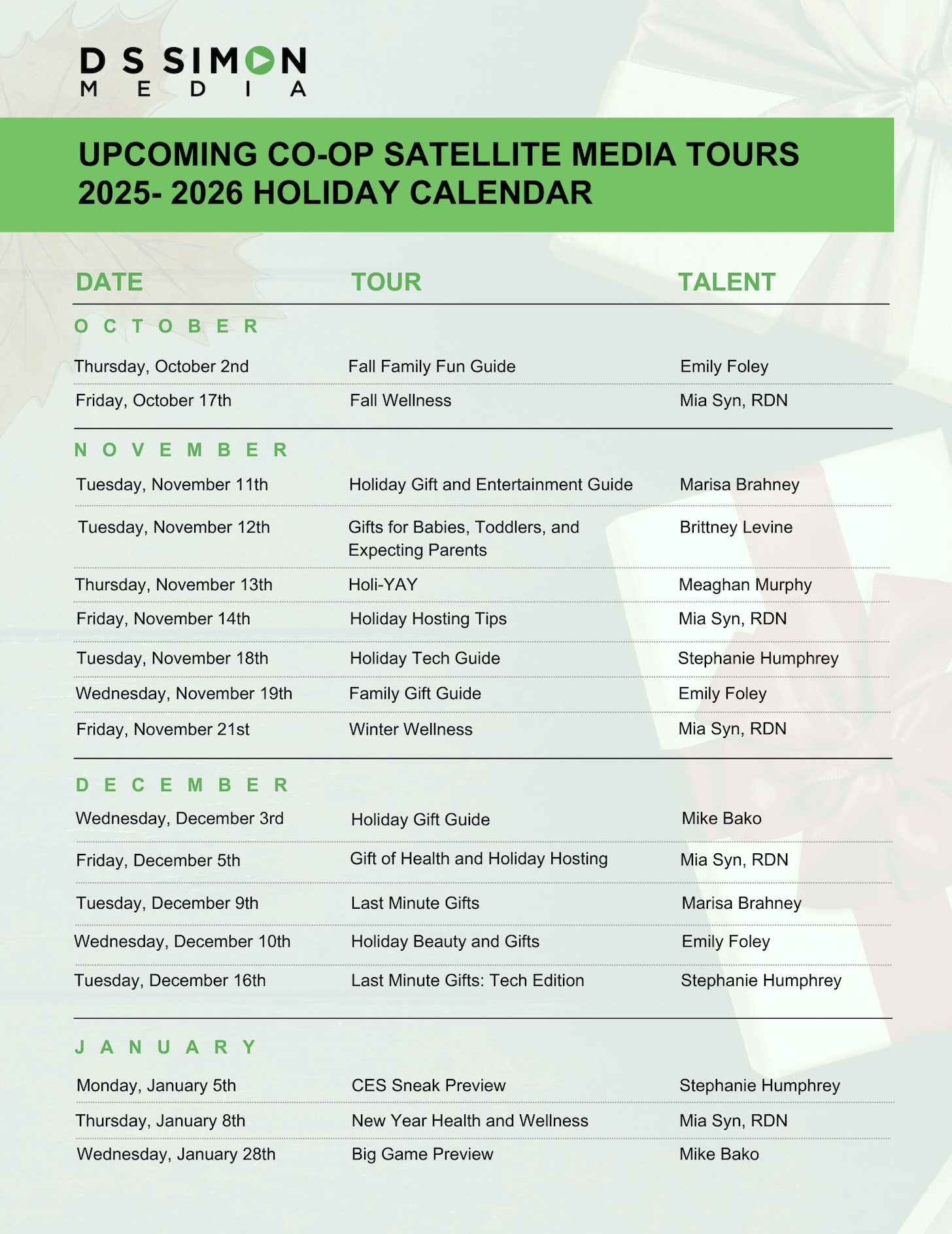 2025 Holiday Co-op Calendar